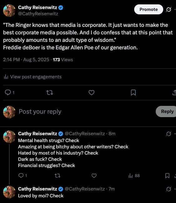 A few days ago I posted a lil missive to notes. It was a “this probs isn’t worth a whole newsletter, but I still want to say it” situation: